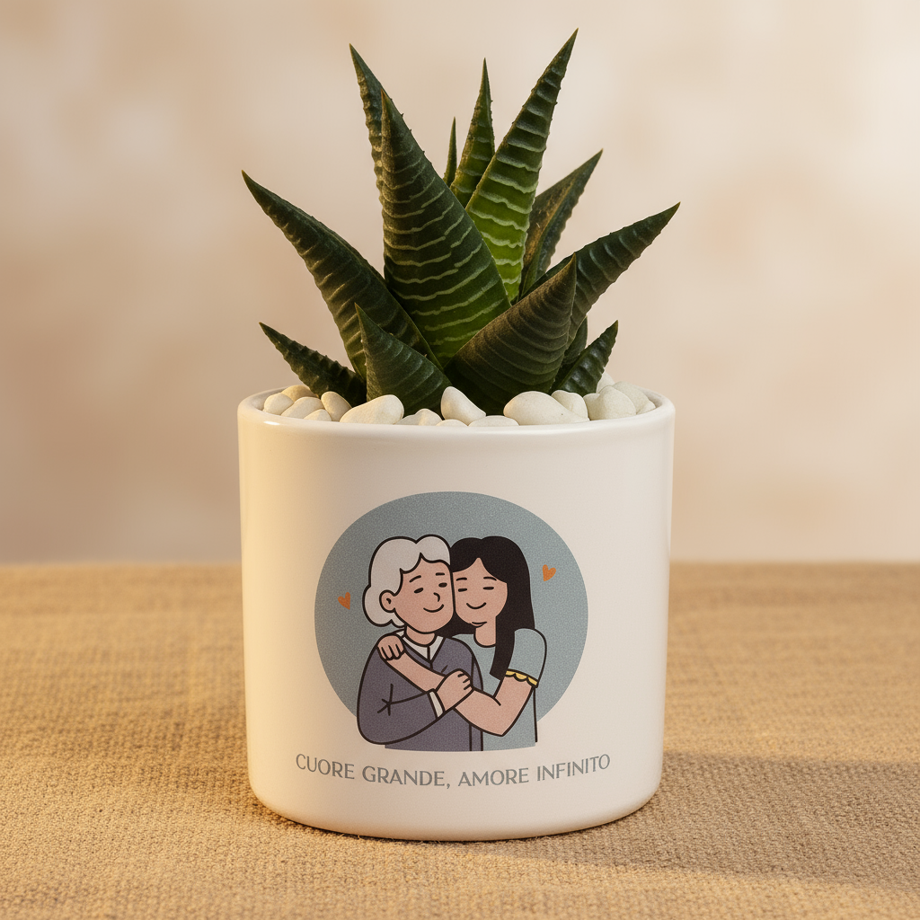 Un vaso in ceramica artigianale che racchiude un messaggio di amore profondo e senza tempo, impreziosito da una piantina grassa. Un omaggio delicato e significativo, perfetto per celebrare il legame speciale con i nonni.